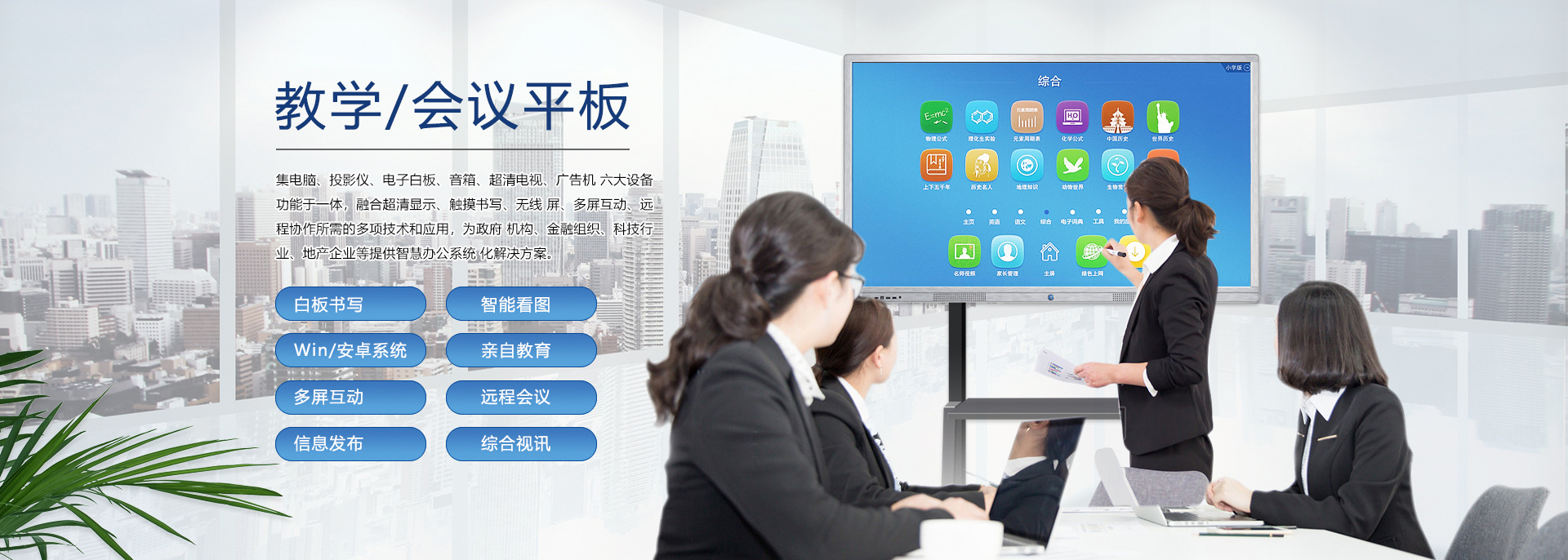 查看詳情在信息急劇膨脹、互聯(lián)網(wǎng)快速發(fā)展、競爭愈加激烈的商業(yè)社會,“開會”已經(jīng)成了職場人士最為熟悉的一種工作方式。尤其是企業(yè),工作中需要通過許多大大小小的會議交流信息、解決問題和作出決策。會議的最終目的是提高企業(yè)運作的效率,但是許多的企業(yè)卻往往陷入了“低效率”的泥潭。場景一:在與客戶的洽談會上!準備好的PPT竟發(fā)現(xiàn)打不開了!場景二:開會啦!與會人員陸續(xù)進入會議室,人手一疊厚厚的資料,一時間,整潔干凈的會議室一下子沸騰起來,會議討論聲,不停翻找資料的刷刷聲好不“熱鬧”!場景三:炎炎夏日,在小“黑”層里,投影機發(fā)出陣陣熱浪,讓周圍本就燥熱的人更加的心浮氣躁,久久不能平靜下來,更何從談起會議質(zhì)量!場景四:遠程......